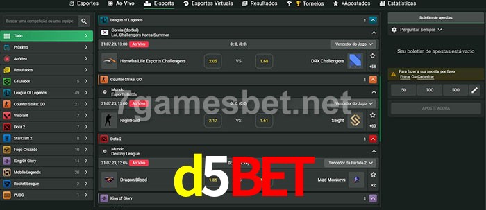 O d5bet oferece uma grande seleção de opções de apostas em e-sports com probabilidades competitivas